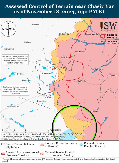 ISW 評估認為,在 11 月 16 日至 17 日的