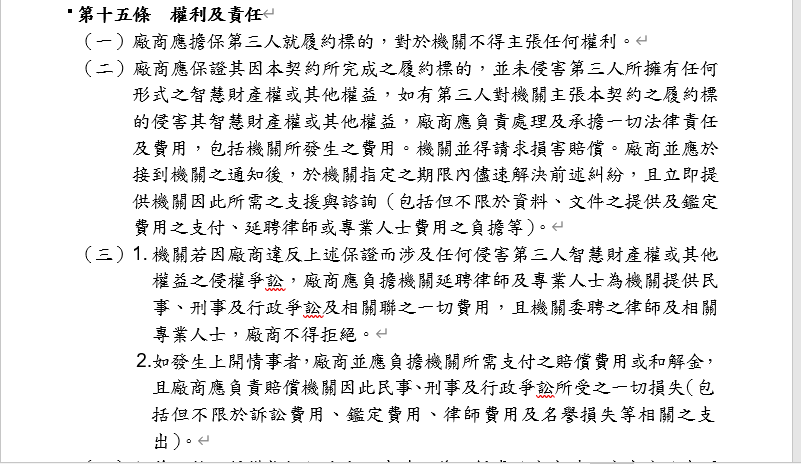 → asmp : 契約訂得很清楚,廠商投標的產品不能侵害任何智慧財 11/20 20:13