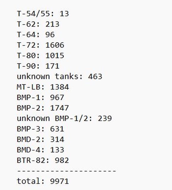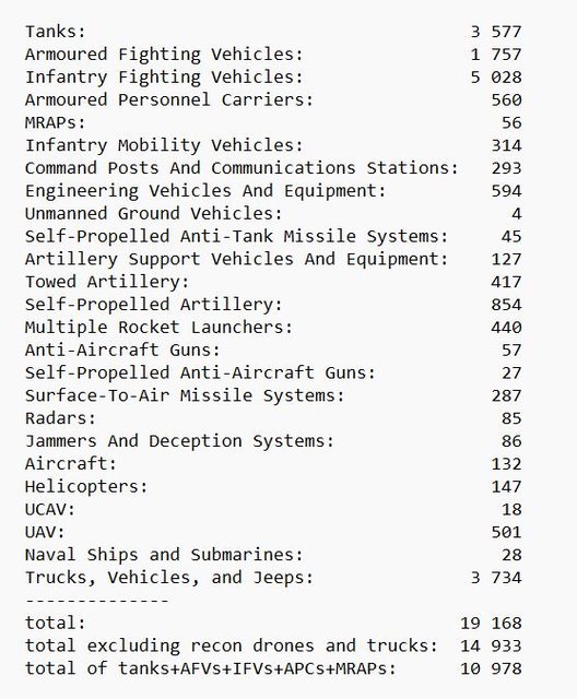 目視確認損失軍事裝備統計 2024.11.17 ~ 11.19