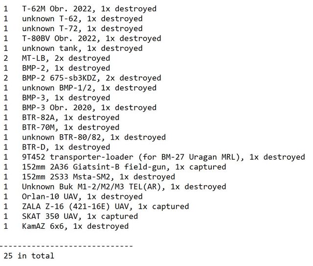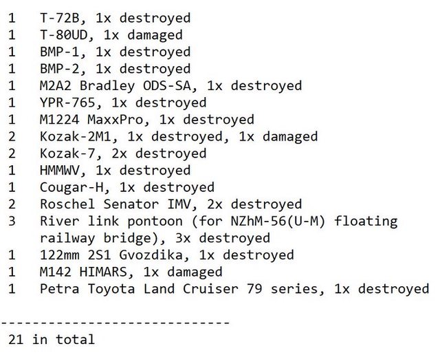 目視確認損失軍事裝備統計 2024.11.20 ~ 11.22