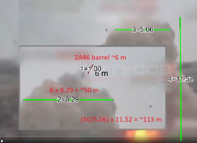 舊紀錄是 T-72在馬里烏波爾的103公尺