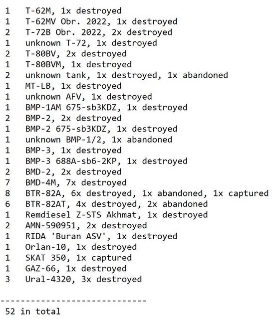 目視確認損失軍事裝備統計 2024.11.28 ~ 11.29