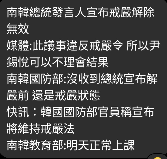 → claymath : 南韓如果可解散國會,再宣布戒嚴就沒人可以解除了XD 12/04 00:40