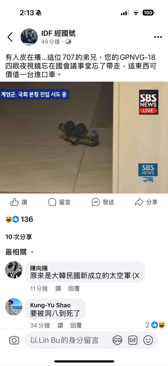 推 asked : 有看到他們收隊的時候把夜視鏡拆下放背包才離開 12/04 02:26