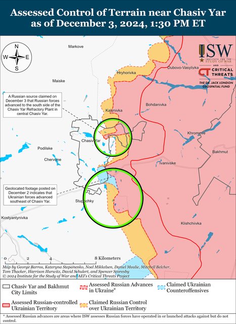12月3日,俄羅斯軍隊繼續在Chasiv Yar方向