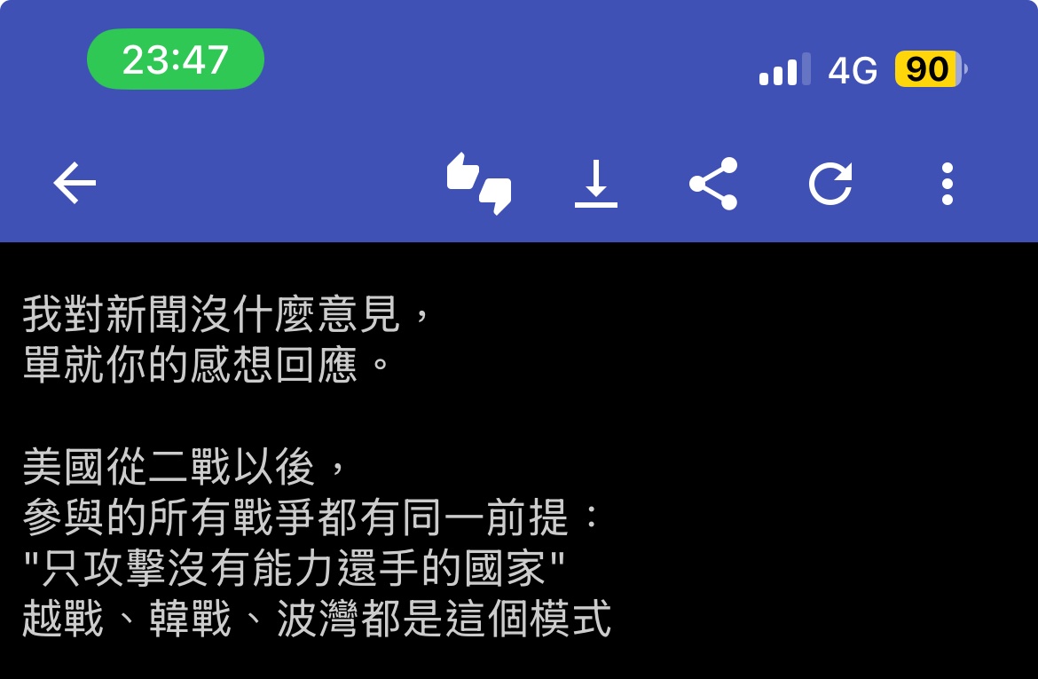 → whitertiger : 有開戰跡象,美國就會開始運送裝備了,哪會等開戰在 06/22 23:30