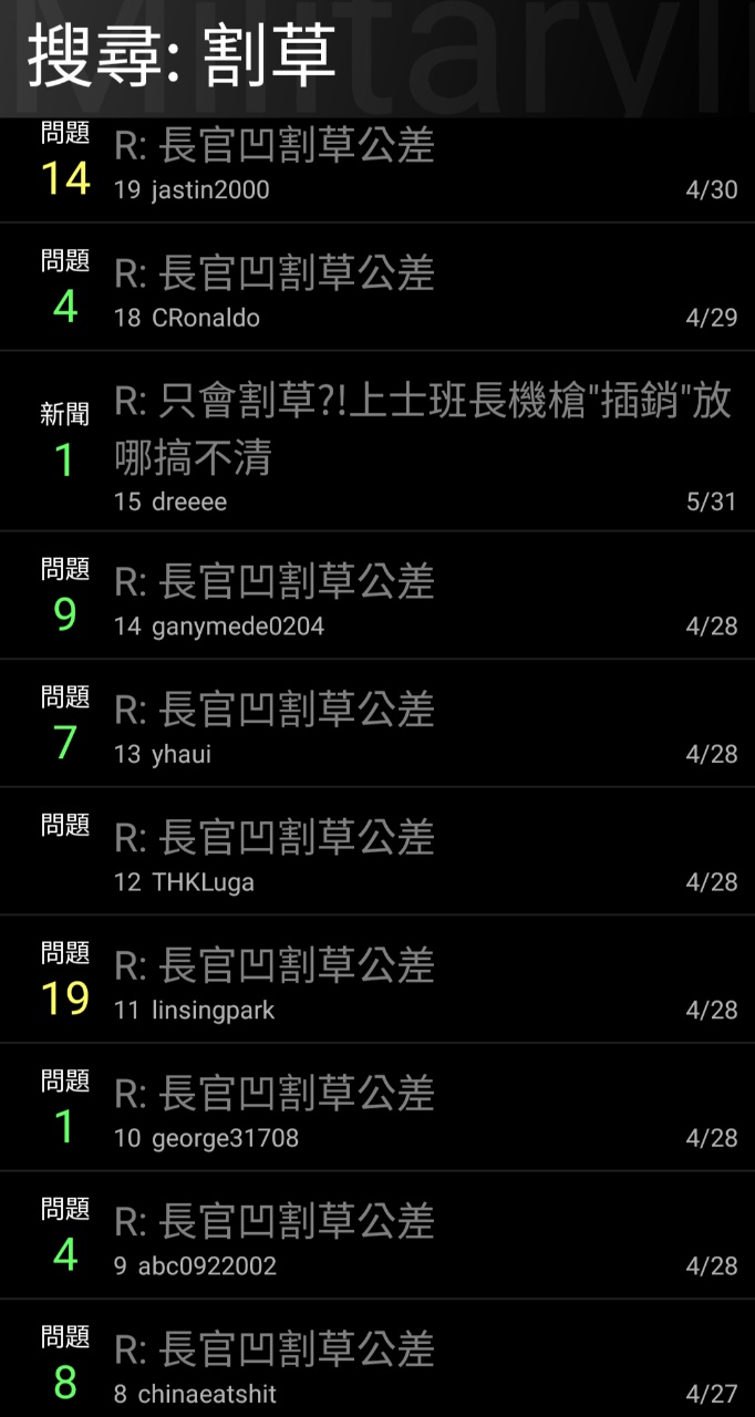 噓 peterlee97 : 現在當兵不會割草? 又有人在蒿小了== 我現在騎車 06/26 08:23