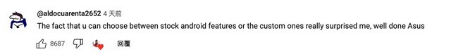 MKBHD YT上的手機評測大手 他簡介直接說:「Zenfone 10 has fixed (almost) every nitpick I had with the 9. 」 ZF10解決了幾乎改正了所有我對ZF9的吹毛求疵 像是去年敲碗要有的無線充電 還有UI的自訂義也讓他驚豔 除了可以選擇偏原生還是偏華碩 還可以針對細部項目個別調整 另外附上高讚留言 https://i.imgur.com/A58OhsZ.jpg