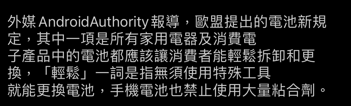→ oopsskimo : 之後歐盟不是要統一電池可自行提換?那麼直接換電池 07/14 23:04