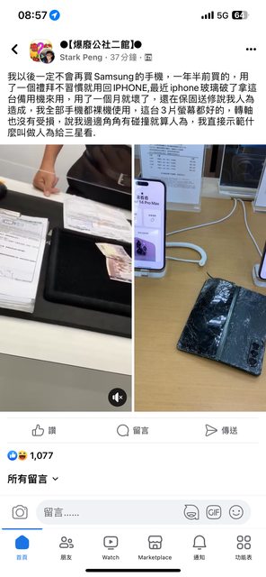 → hyghmax1202 : 當場摔爛不給三星面子 無價 台灣三星維修這麼爛 07/16 18:52