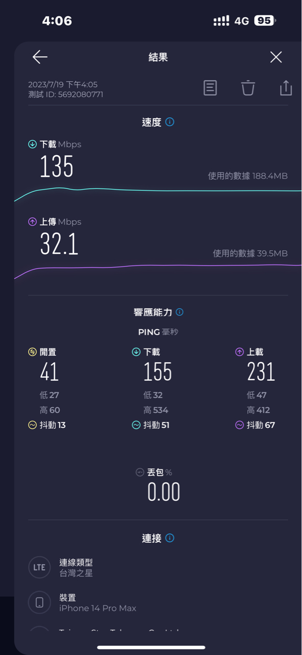 → lunav : 用量。上次看YOUTUBE直接變3G訊號卡死,同一時間, 07/19 09:57