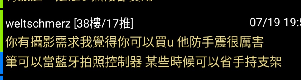 → weltschmerz : 筆可以當藍牙拍照控制器 某些時候可以省手持支架 07/19 19:51
