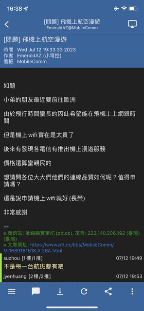 推 Arodz : 用過機上漫遊 PTT沒問題也能聽廣播 07/30 20:24