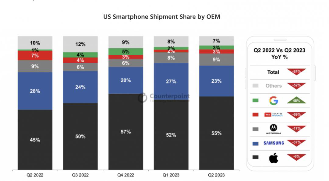 推 SaberMyWifi : 蘋果52%-55%:要倒了 谷歌:2%-3%:逆勢成長48% 08/01 09:56