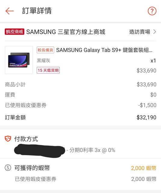 看似一張平平無奇的展示機照片 是我從發表後花了一個多禮拜 跑了至少4家三星智慧館拍到的照片 一開始問了家裡附近的 說還沒到 到昨天去百貨的專櫃問 店員才說是物流延期 今天不信邪又跑一趟 終於見到真機 雖然因為功課都做一堆了 只是想看看實機 去現場摸個2.3分鐘而已 但你知道有多感動嗎qq 扯遠了 其實我一開始想的是 買平板就好 幹嘛到鍵盤皮套組 我根本用不到 但是感覺那個鍵盤 好像能裝個逼(x) 我自己手上的平板上Tab S6lite 剛上市就買 很喜歡他的原廠書本式皮套 輕薄 便攜 而且好看 但是這次Tab S9的皮套 最基本的被改成多角度皮套 我覺得很醜 薄型鍵盤皮套外型最接近我的理想 但單買平板又買薄型鍵盤皮套 總價就比鍵盤組貴 而且鍵盤組的規格比較高級(?) 所以就還是決定買到鍵盤組 接著就是物色購買平台的部分 我也是花了很大的心力 每天定時打開各購買平台 也打了好幾家智慧館問價格 但Tab系列這次就是活動邊緣人 大部分優惠都在折疊機身上 不是Ultra更邊緣 連個一點優惠都沒有 電腦家的U還有送chromecast4 +只有送麥當勞單點兌換券== 貨比三家後 在蝦皮買 湊巧(雖然我猜是計畫好的==)這禮拜週末是三星品牌日 雖然表定只有禮拜六 但是2000蝦幣的折扣券可以用到禮拜天 禮拜天又固定是商城95折券的使用日 所以算是天時地利人和 https://i.imgur.com/sgVzGeX.png