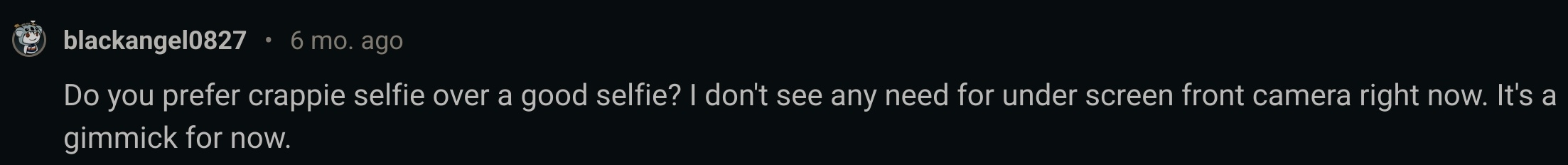 appleonatree: iPhone使用者會因為鏡頭在螢幕下就跳槽? 08/17 01:40