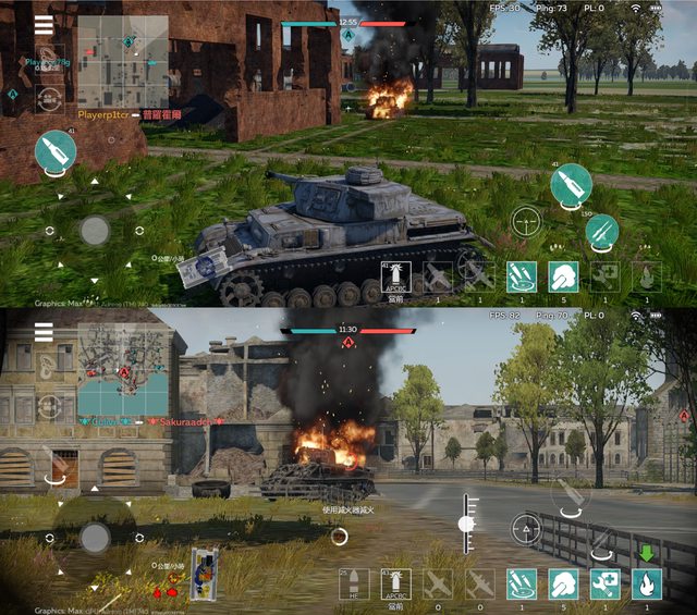 火焰燃燒這裡也很明顯 有開光追 火焰跟濃煙的真實度比較高 請原諒沒有太多火光特效 war thunder mobile坦克車有夠難開XDDD 要瞄準要截圖要閃對面砲火太困難了...... 每次好不容易開到戰場 看到敵人 開觀瞄 然後我的車就爆炸了 後來設定好超音波熱鍵 開火速度快一點才終於打死對面XD 總之應該是第一款支援光線追蹤的手遊 我覺得表現確實不錯 畫面真實感很棒 也希望未來更多手遊能支援這個功能 玩起來畫面真的更讚 爽度很夠 -- ※ 發信站: 批踢踢實業坊(www.ptt.org.tw), 來自: 101.10.10.94 (臺灣) ※ 文章網址: https://www.ptt.org.tw/MobileComm/M.1692958336.A.BBA