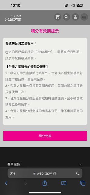 Feishawn : 台灣之星只會寄簡訊叫你續約哪會跟你說什麼點數 08/27 18:12