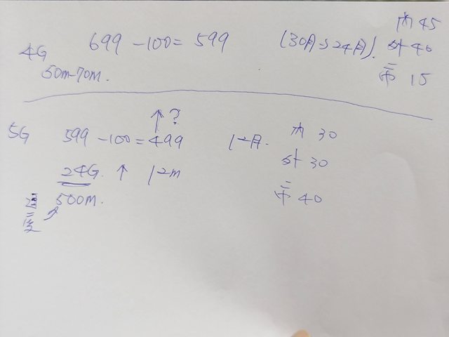 1.當前資費和到期日期:遠傳599 4g吃到飽 9/2到期 2.使用需求:吃到飽網路且無電話 3.常出沒地區:大台北 4.NP/續約/新辦:np 或續約 5.預算範圍:599含以下 --------- 我親戚最近4g吃到飽快到期了(原本是遠傳599/月) 之前她在門市問續約只有699 4g吃到飽的方案 我今天跑各個電信幫她問問看攜碼有沒有優惠 台灣大哥大: 看來是個剛入職的店員,一聽攜碼馬上推銷手機方案 l:3 手機方案真的是怎麼看怎麼不划算,重點是沒需要 然後店員就指Dm上的5g 599 24g吃不飽方案(流量用完變成4g輕速吃到飽) https://i.imgur.com/wCMh0oe.jpg