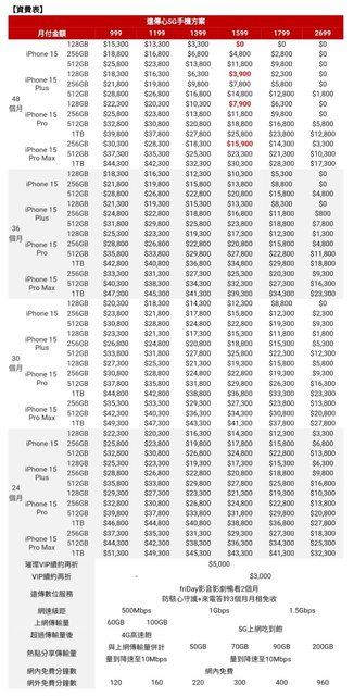 1.原文連結:https://www.ettoday.net/news/20230914/2582034.htm?from=ettoday_app 2.原文標題:遠傳公布iPhone 15資費!月付1,599元零元帶回家 3.原文來源(媒體/作者):ETtoday新聞雲 記者陳俐穎/綜合報導 4.原文內容: https://i.imgur.com/gUxagZp.jpg