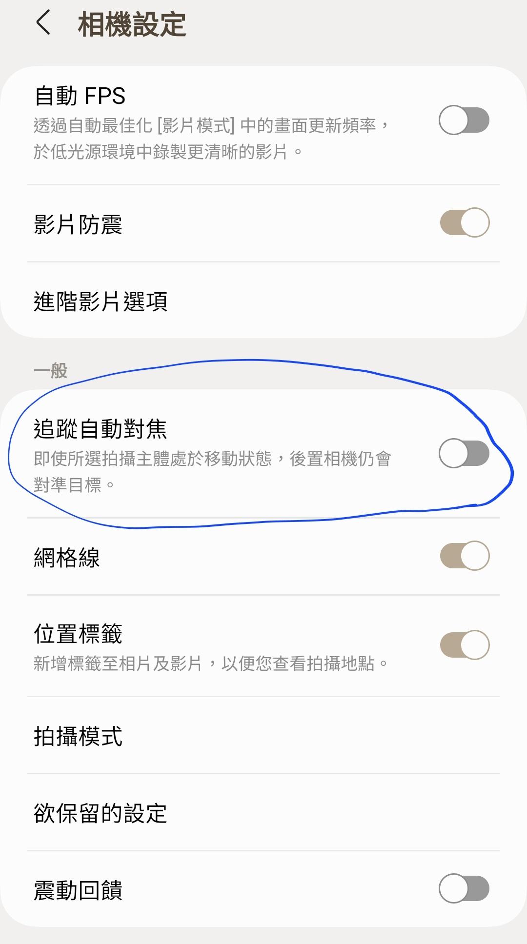 cowardooooo : 找到方法了。進設定,把「追蹤自動對焦」“關閉”即 09/25 17:17