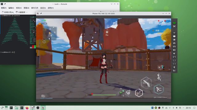 Bliss OS理論上還是跨平台的,Linux/macOS/Windows都能裝。 在Linux用QEMU虛擬機裝Bliss OS,再配合virglrenderer走虛擬GPU硬體加速,即可達成 在電腦玩手機遊戲的願望,效能接近原生。在這篇文章中我有探討具體安裝過程。 https://reurl.cc/RyvoNr 當然,如果你對市面上商業的手遊模擬器很感冒,想追求自由軟體環境的話,仍可以在 Windows靠VMware的GPU直通,或自行編譯QEMU,裝Bliss OS,不過我沒怎麼研究Windows 上的解決方案就是了。 3. 當作雲手機的載體 Bliss OS是「自架雲手機」的有力人選之一,你可以用手機上的Scrcpy,遠端存取電腦上 的Bliss OS玩遊戲。 https://www.youtube.com/watch?v=nRe2GL7yf9c