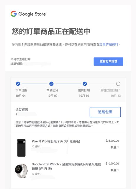 今天早上收到DHL通知配送中 http://i.imgur.com/c02EPL7.jpg