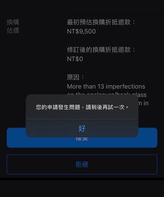 有蘋果仔抱怨trade in系統按拒絕也沒用 https://i.imgur.com/YCIetQ0.jpg