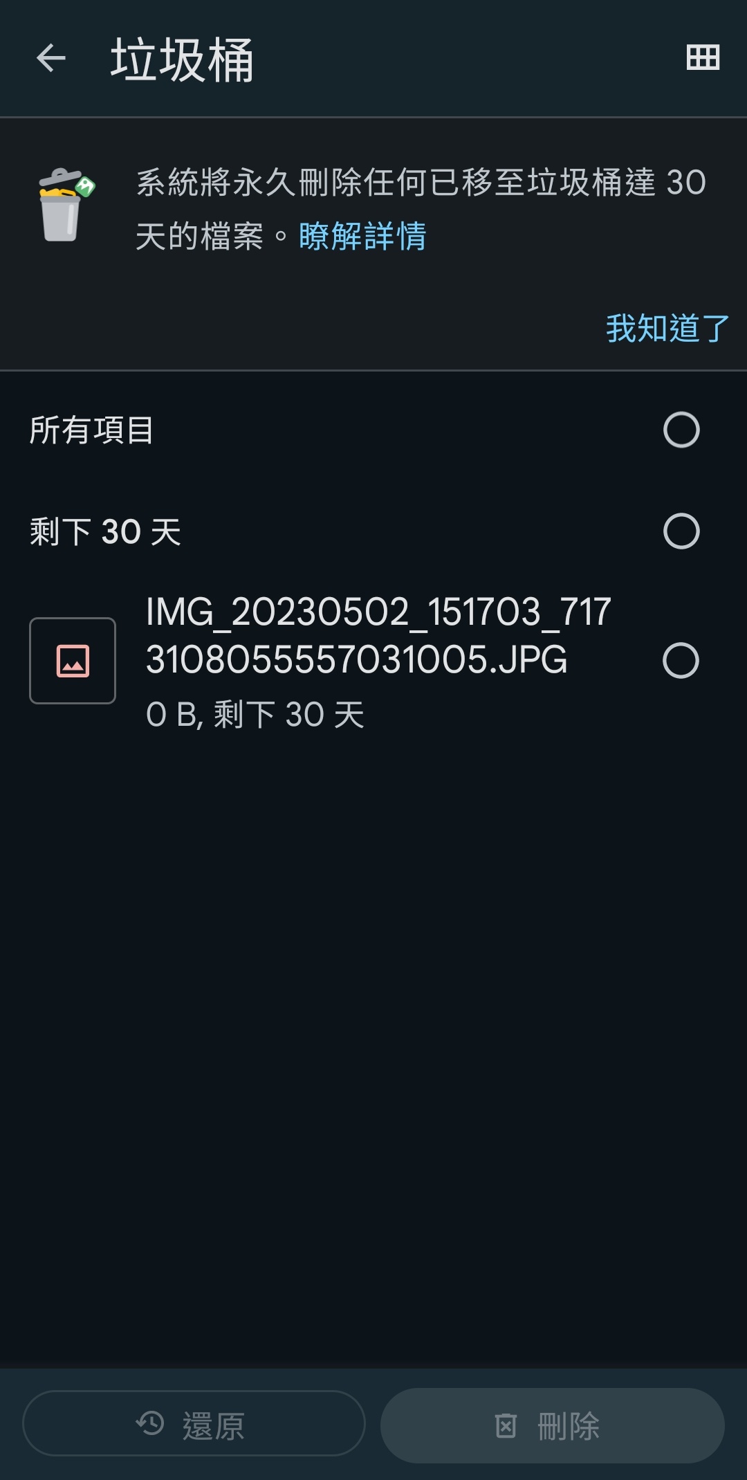 → keigowei : 用Google Files移到垃圾桶再刪除試試看10/12 17:54