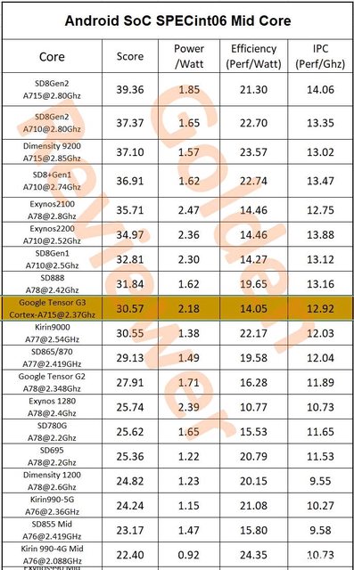 另外SPEC2006 CPU 大核、中核能耗也出來