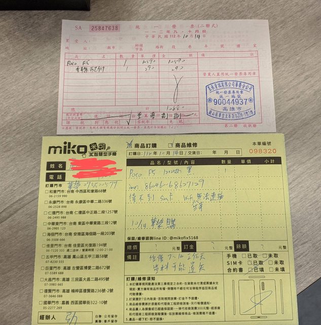→ bboy5j : 請問sim1跟sim2都讀不到嗎?看你維修單寫wifi、藍牙 10/14 22:08