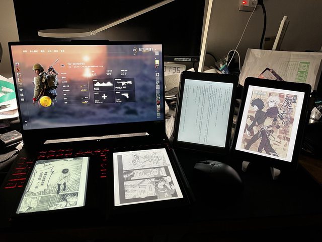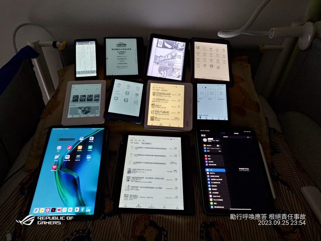 目前手上有10台閱讀器+2台平板,臉書電子書社團推坑很猛的...... https://i.imgur.com/RvFZv0z.jpg