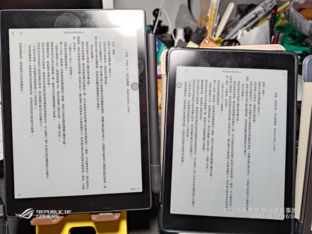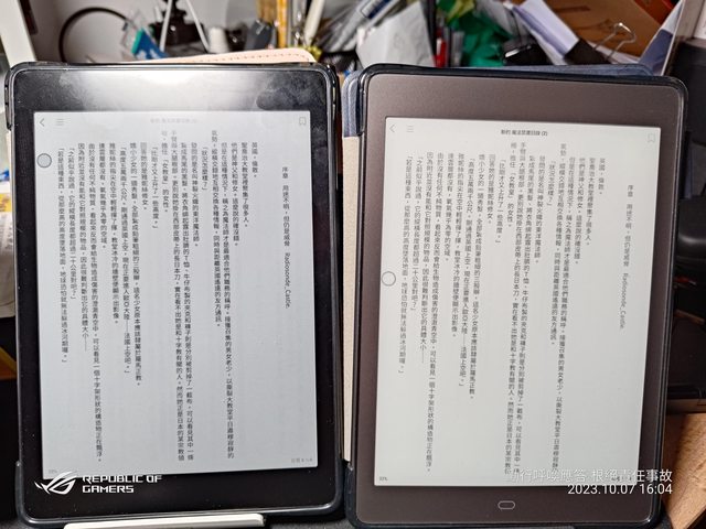 彩色機看黑白文字和黑白機看黑白文字仔細看才會發現到差別 (左Note Plus CC,右P78 Pro) 文石的軟體優化功能還可以把字變粗體,看書不用仔細盯 https://i.imgur.com/mX4e4XN.jpg
