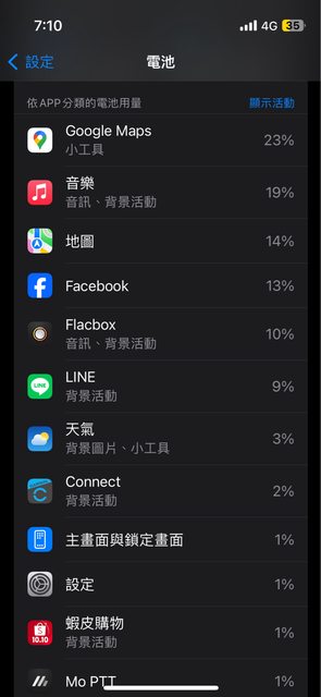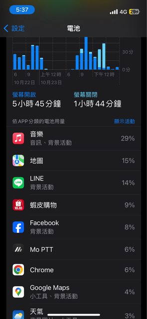 → manbow77 : 這裡顯示的是APP耗電 看是否有開內建的軟體EQ10/24 23:24