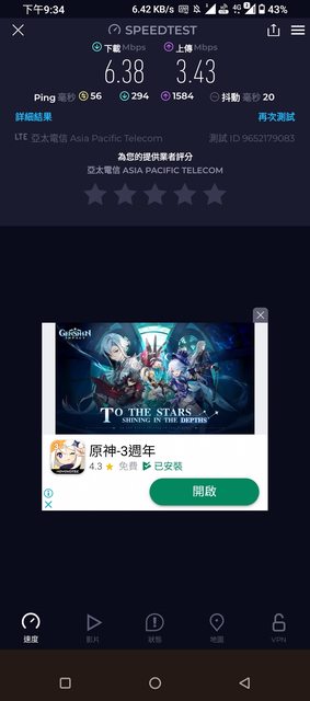 lizamustang : 有辦亞太299,網速很迷,測速軟體就算跑十幾m,分享 10/27 12:28