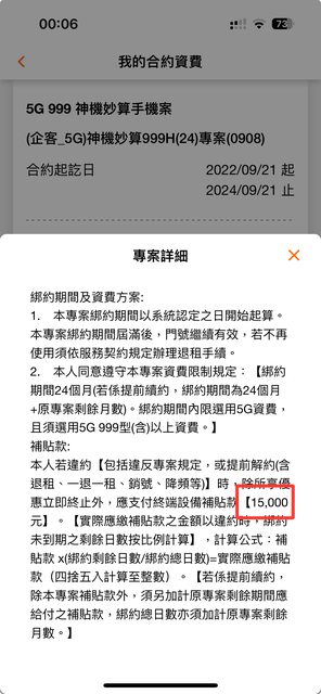 ZongKenGG : App顯示的是月租費999非企業客戶的違約金吧?10/27 00:31