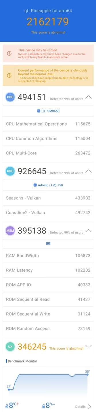 Vivo X100 跑分將近225 萬分 CPU 58632分 GPU 918790分 MEM 474036分 UX 338400分 不知道能耗會不會翻車? https://i.imgur.com/Hr33Jpd.jpg