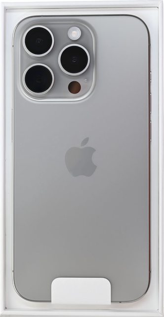 ▼撕開外盒背面一次性防拆標籤,打開外盒上蓋,裡面的Apple iPhone 15 Pro採背面朝