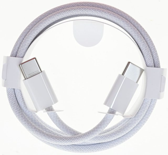 ▼內附的USB-C to USB-C充電傳輸線,線的白色外皮有編織線紋路,不含兩端接頭的長度