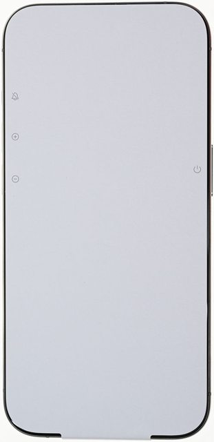 ▼手機正面螢幕貼上白色保護膜,並印上兩側按鍵功能