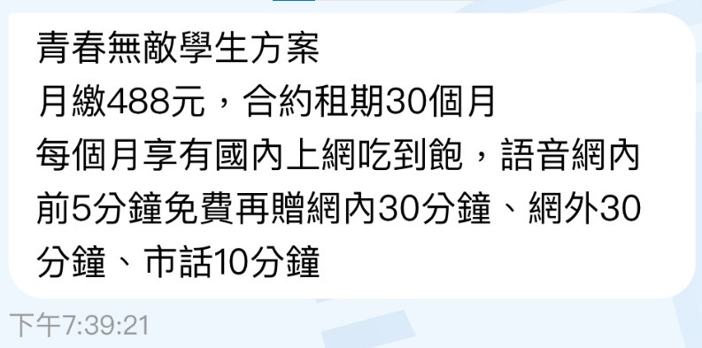推 peter861248 : 原本699 4G吃到飽資費(原始799) 12/02 23:30