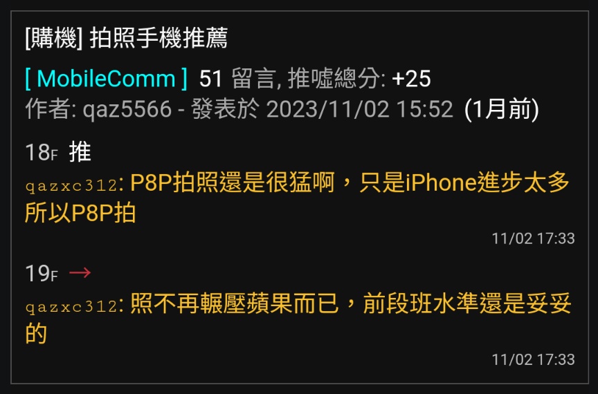 runningboy : 那個晶片最垃圾的P8P? 不是說拍照最值錢 12/05 13:09
