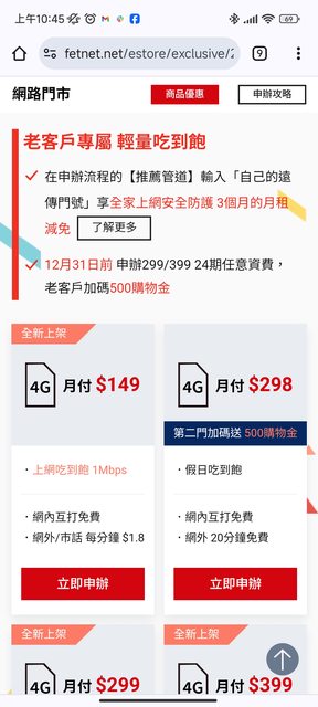 → wtfconk : 老客戶是99吧,但沒有吃到飽,1.2G流量用完就斷 12/06 19:31