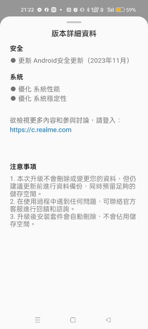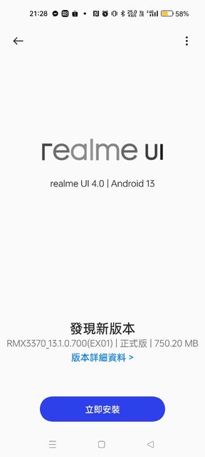 這次的版本號碼是RMX3370_13.1.0.700(EX01),容量大約七百多MB。