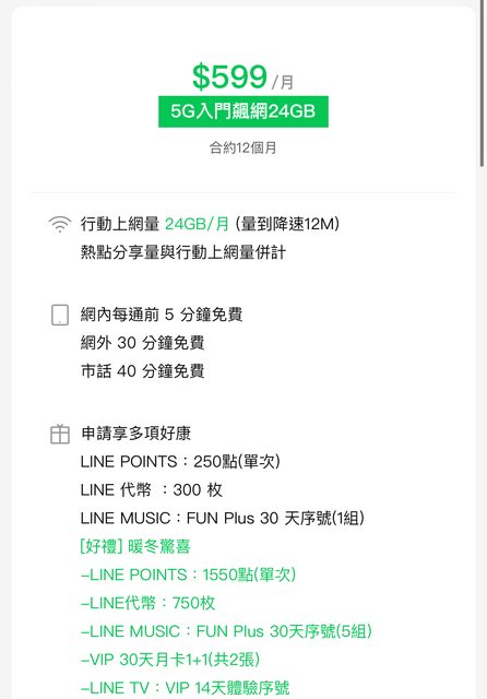 → sean1225 : 加上LINE POINT 算是變相補貼月租費吧 12/14 11:15
