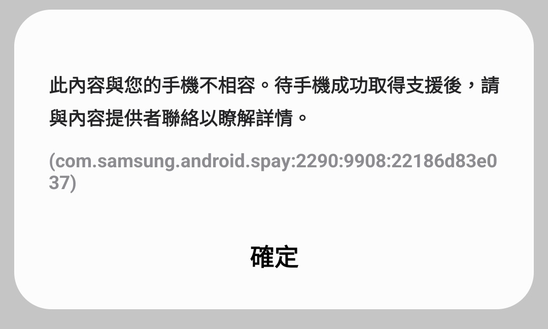 → sx3052 : 去GOOGLE找一下samsung pay support region吧~ 12/22 14:44