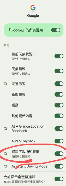 後來去設定 - 應用程式 - google - 通知 - 資料下載通知管道,重新開關一次,通知列