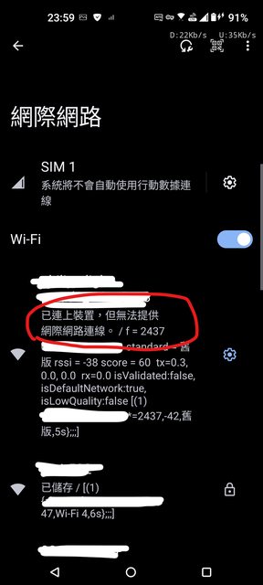 標題[問題] 無法連上「沒有網際網路連線」的WiFi