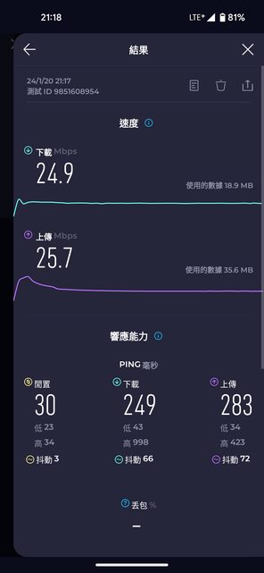 ymx3xc : 4G網路的PING會隨著時段壅塞或順暢不同,除非能獨享 01/20 23:03