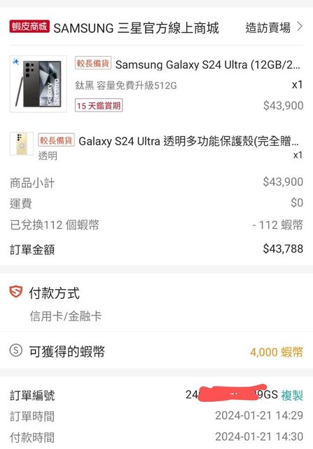 → mdk3500 : 然後蝦皮三星購機聽說不能保三星care01/21 15:18